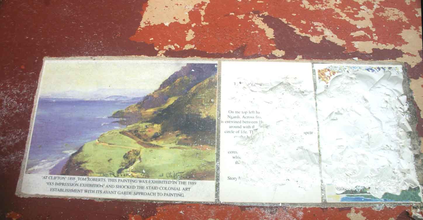 Mr Van Wijk a witness, an elderly woman, saw a man smash into the plaques with a hammer earlier that morning. He said the only plaques that had been defaced were two, entitled, “Kuradji Dreaming”.
