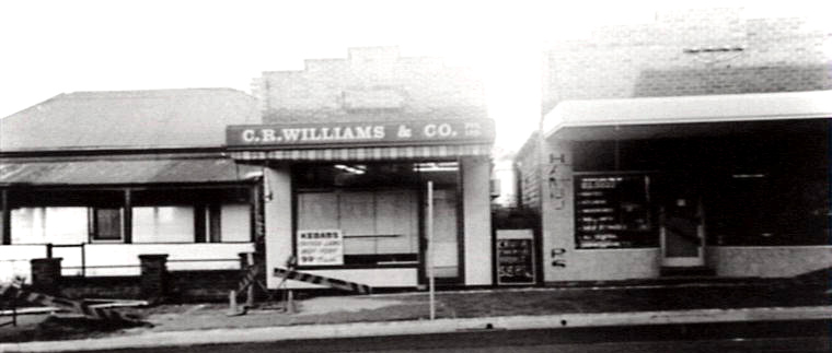 The Bulli butcher shop when John Williams operated it. The dwelling to the left was the original home of the Floyd family. The house was demolished to make way for the current butcher shop at the corner of Park Road and the Princes Highway. The old butcher shop (centre) is still in existence.