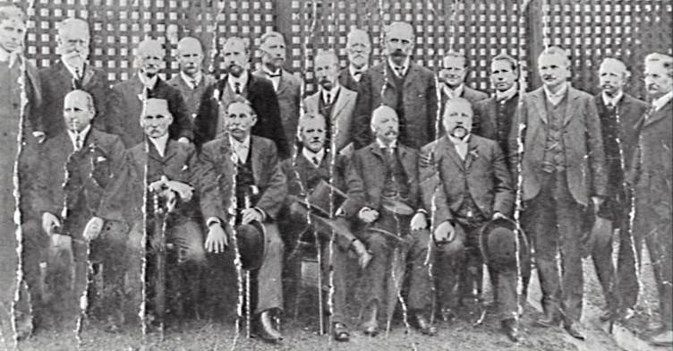 Nicholson (third from left top row) was also a director of the first Bulli Hospital Board in 1892. Also pictured are A S Artis (Sitting bottom row third from left) whose formal objection to a shortage of ballot papers at Bulli, caused by an “error of judgement” by returning officer Henry Fry (bearded and sitting top row fourth from left) caused a by-election in 1891.