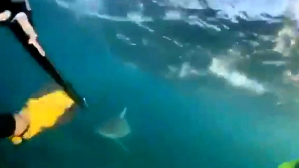 The video shows the shark following close to the pair before turning quickly away. The two teenagers were left shaken after the incident.
