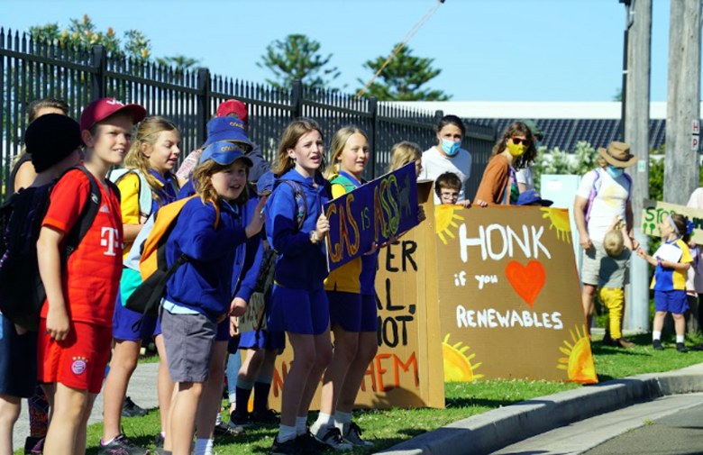 Scores of students and parents from Coledale Public School lined the road along the length of the school. They waved banners and asked for honks of support from passing cars, cheering loudly when their requests were met. Scarborough, Austinmer, Thirroul and Bulli primary schools held similar actions completing the drive-by protest experience for commuters and passers by.
