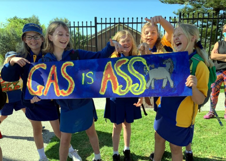 Students took on some self imposed homework painting witty slogans in the lead up to the strike: These included “I’ve seen better cabinets at IKEA”, “Wake up! The Canary is dead”,  “Honk if you love renewables” and “You can’t fight fires with gas”