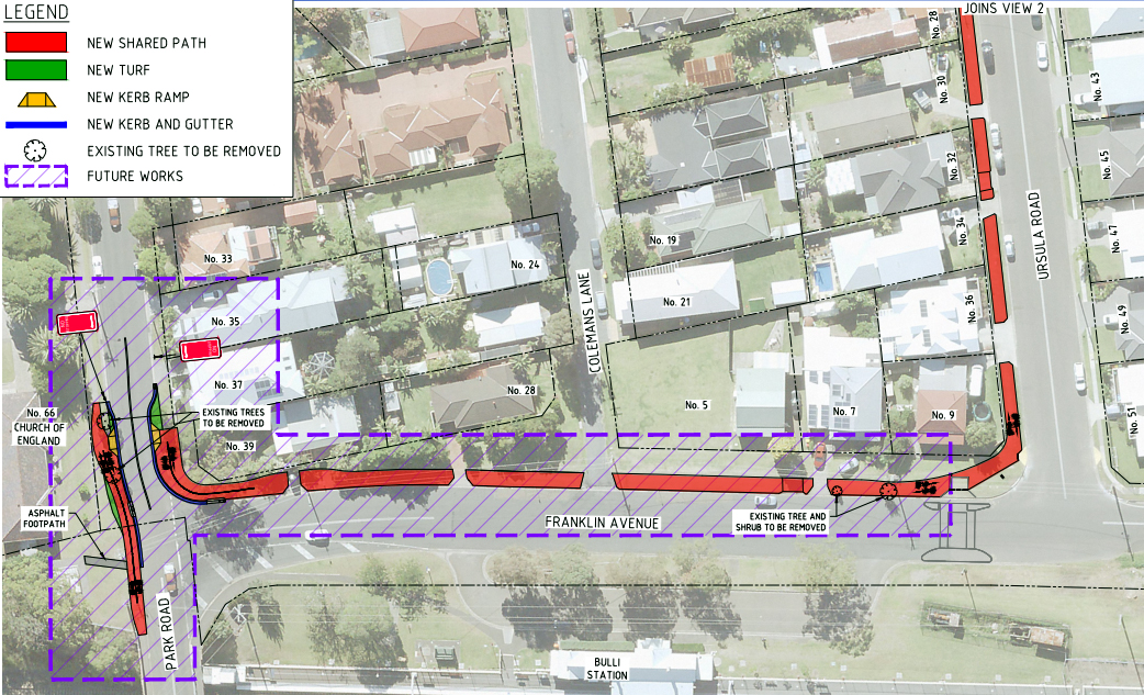 The path will run from Park Road, along Franklin Avenue, past Bulli Railway Station to Ursula Road, following the southern boundary of Bulli Park, finishing at Trinity Row.