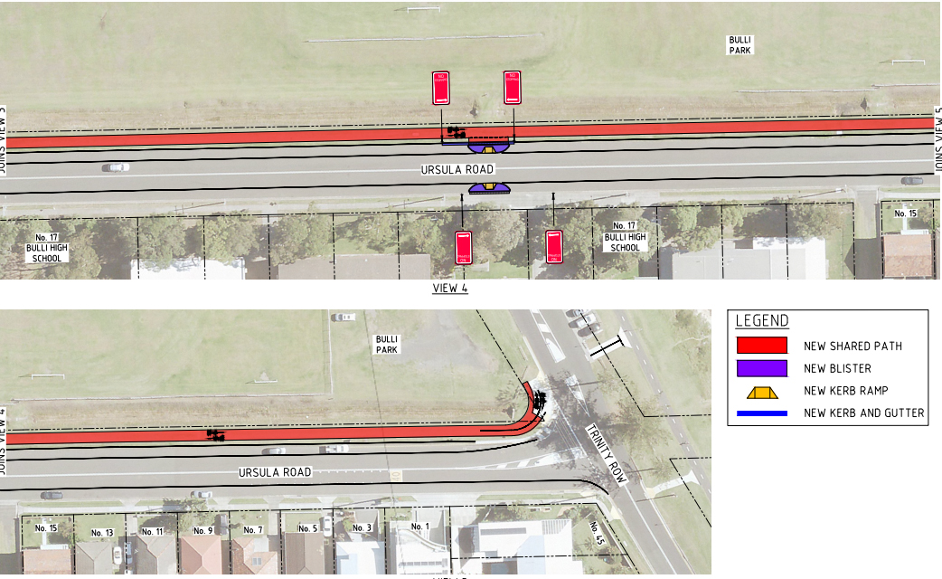 Residents have raised concerns over the lack of shade trees along the section of the shared pathway next to Bulli Park, and safety issues at the intersection of Park Road and Franklin Avenue.