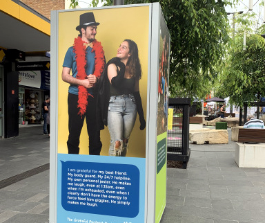 The project has captured and shared images of young people and their grateful statements on ‘exhibition blocks’ throughout the Wollongong Mall.