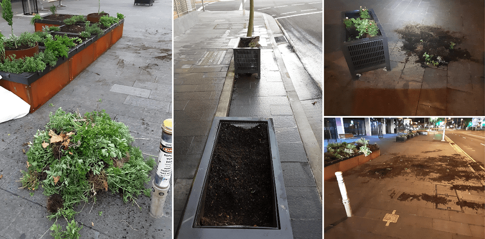 A number of public spaces have been targeted with plant theft and other forms of tree vandalism in recent months.
