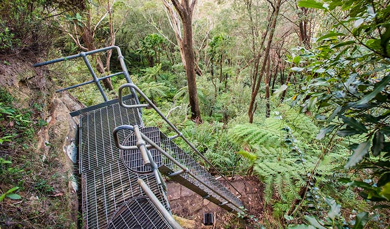 Starting near Sublime Point, the track descends steeply from the lookout down the escarpment cliffs, through dense forests dotted with tree ferns and palms. A series of ladders and a giant staircase allow you to rock-hop your way down to Austinmer.