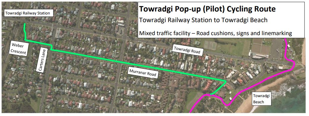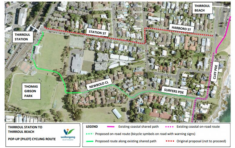 Wollongong Lord Mayor Gordon Bradbery said that the Thirroul and Towradgi pop-up cycling routes provided key links from each train station to the coast.