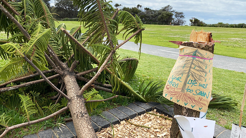 The incident follows a similar tree vandalism which saw two other Norfolk Pine trees destroyed at the same location, last week.