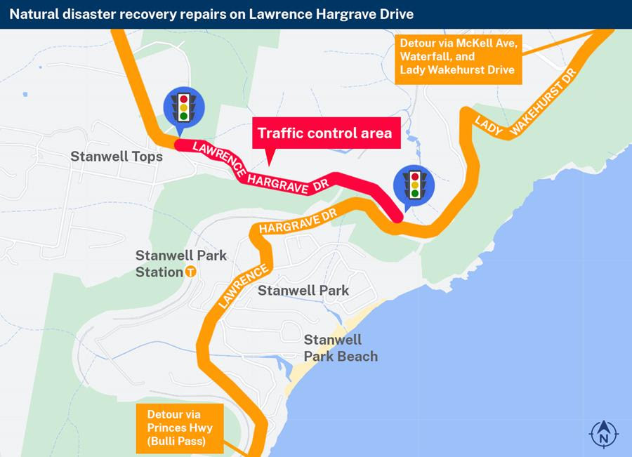 TRANSPORT for NSW will carry out repairs on Lawrence Hargrave Drive, at Stanwell Tops, between Longview Crescent and the intersection with Lady Wakehurst Drive.