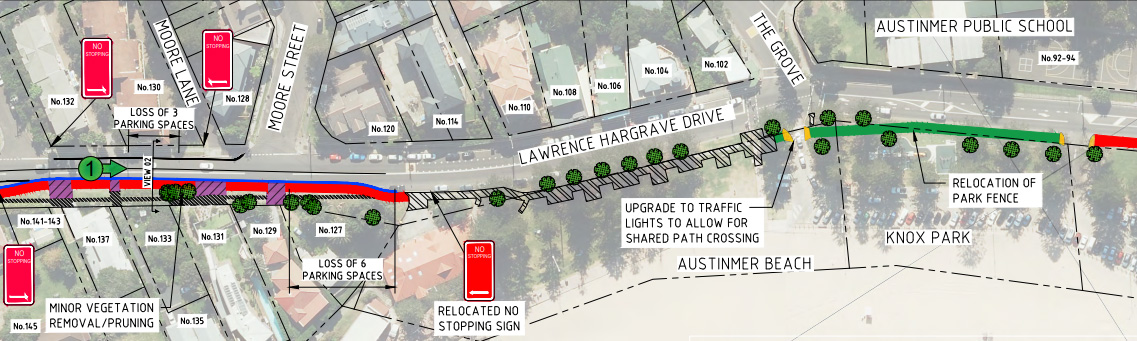 As the proposed works are spread out along Lawrence Hargrave Drive, Council have broken the project down into sections: