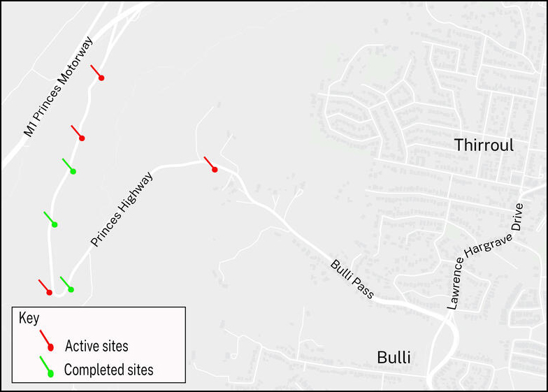 An extensive work program began in February 2024 to repair the remaining landslip damage on Bulli Pass. This work is expected to take up to six months to complete.