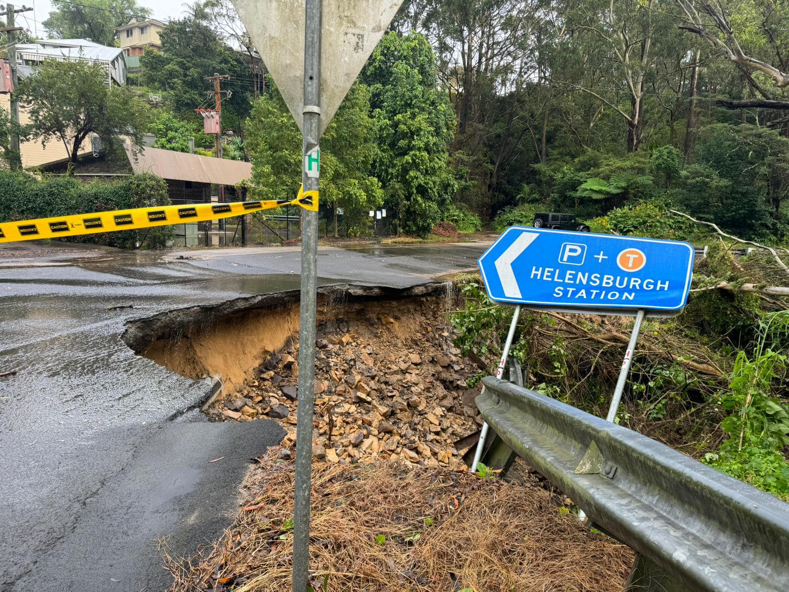 “In Helensburgh, for example, we’ve seen extensive damage to sections of roads near the Helensburgh Train Station carpark. We’ve investigated the extent of the damage and installed temporary traffic arrangements while we get started planning how we will go about the repair work.