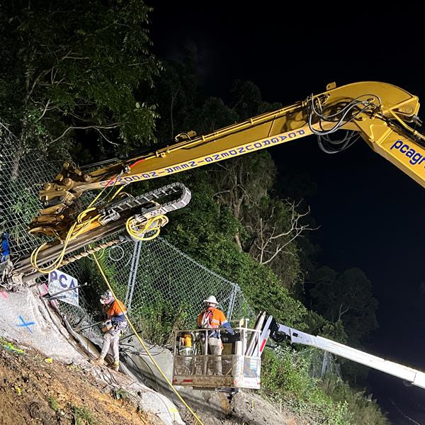 Given all the added moisture in already heavily saturated ground on Bulli Pass, Transport for NSW (Transport) has decided to make changes to the repair plan at the hairpin bend. More soil nails will now be installed than originally planned to provide more strength to the slope.