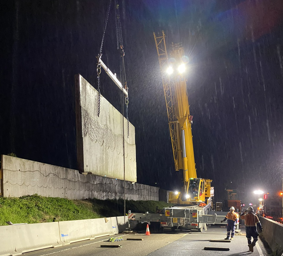 “Work included installing 32 temporary street lights, installing 1400 metres of barriers and placing 1100 tonnes of asphalt.